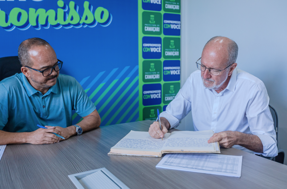 Em virtude da antecipação da viagem de retorno, após quatro dias de viagem em Portugal, na tarde desta quarta-feira (19/7), o prefeito de Camaçari, Elinaldo Araújo, e o vice-prefeito, José Tude, assinaram o Termo de Retransmissão de Cargo, cumprindo as formalidades legais. O regresso antecipado deu-se em razão das condições de saúde da sogra do gestor municipal, que se encontra hospitalizada.
